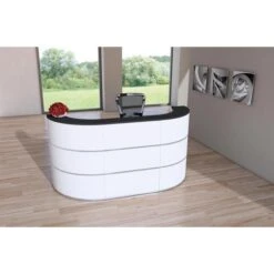 Kerkmann Empfangstheke Bari 3563, Weiß / Weiß, 231 X 112 X 122,5cm, Bogentheke Mit Anbautisch