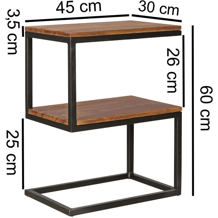 Der Beistelltisch besteht aus Sheesham-Massivholz und wird in Handarbeit gefertigt, dadurch kann es zu Farbabweichungen oder Unebenheiten kommen.